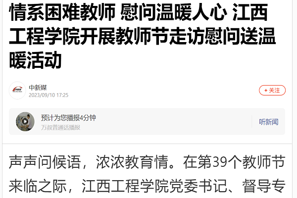 声声问候语,浓浓教育情。在第39个教师节来临之际,beat365体育官方网站党委书记、督导专员胡涌,党委副书记、校长陈学军,党委副书记、副校长冯赟开展教师节走访慰问送温暖活动,向奋战在教育一线的广大教师、教育工作者致以崇高的敬意,并为朱伙军、邓丽娟、杜江凌等困难教师送去慰问金和节日祝福,带去了校党委和工会的关心关爱。