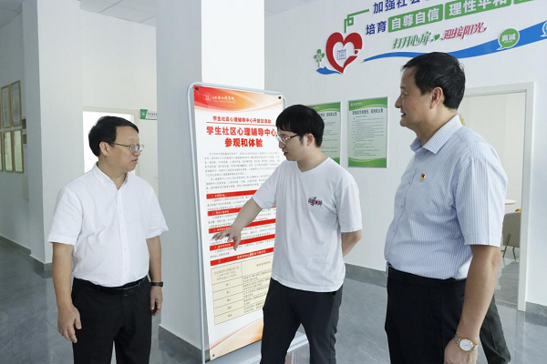 (林坤部长在学校领导陪同下参观了心理健康咨询中心)