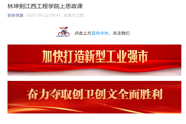 授课中,林坤从“新余简介、新余城市精神、站上新的发展起点的新余”三个方面对新余区域位置、历史沿革、经济发展以及“开放、创新、争优”的城市精神作了详细介绍和解读,并就新余市人才政策进行了宣讲,引导广大新生深刻认识和正确把握新余市情,全面了解新余市的文化底蕴、发展现状、优美生态和红色传承,进一步增强对新余的认同度、认知度、自豪感和荣誉感,选择新余、留在新余,在今后的人生中掀开崭新一页。