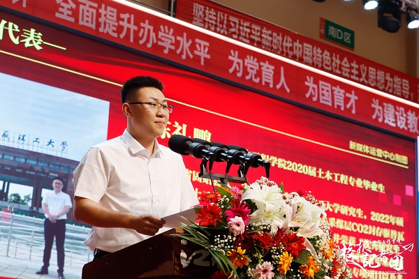 优秀校友代表、2020届土木工程学院土木工程专业毕业生陈礼鹏向同学们分享了自己在beat365的四年求学经历和工作历程。希望同学们在未来四年里要如饥似渴地学习专业知识,秉承“勤朴敏信”校训和“自立自强、乐业乐群”的学校精神,坚持“时时念危机,天天求发展”的理念,怀揣优秀的品质,以“勤朴敏信”的校训作为前进的指南针,共同迎接未来的挑战,创造属于自己的精彩故事。