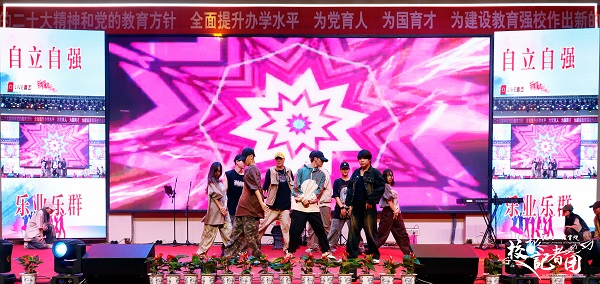 随后,大型文艺汇演将开学典礼的氛围推向高潮。校园文化中心、激情beat365街舞社团带来的开场舞《青春有我定义》热情洋溢、燃情四射,充分调动了现场的气氛。新余市音乐家协会资深音乐人的五正乐队演唱歌曲《鼓楼》和《海阔天空》,节奏叩人心扉,歌词饱含思考和感慨;旋律入心,歌词深邃动人,让人陶醉其中。校园文化中心、动感beat365拉丁社团表演的国标舞《show time》,衣袂飘飞,舞姿轻盈。