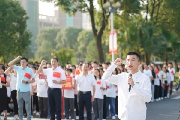 升旗仪式上,党委书记、督导专员胡涌发表讲话,他首先提到“梦想”、“责任”和“担当”。希望同学们梳理自己的梦想新赛道,矢志不渝、刻苦学习、锐意创新、勇毅前行,立大志、明大德、成大才、担大任,勤劳修德明辨笃实,爱国励志求真力行,努力成长为堪当民族复兴重任的时代新人。践行“追求真理、崇尚实践、弘扬友善、勇于担当”的价值追求,以自己应有的责任和担当,奋楫扬帆,踔厉奋发,跑出新时代青年大学生的最好成绩。