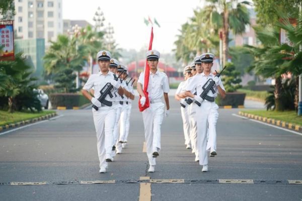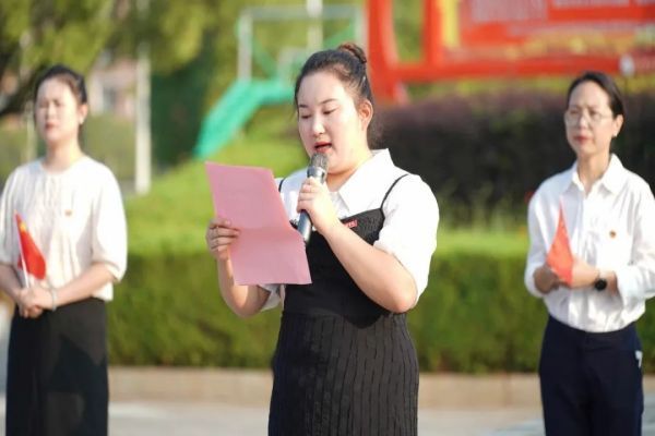 早上七点,升旗仪式正式开始。国旗护卫队迈着整齐划一、铿锵有力的步伐,护送着五星红旗正步走向旗杆。全体师生肃立致礼。五星红旗冉冉升起,在熠熠阳光中迎风飘扬。