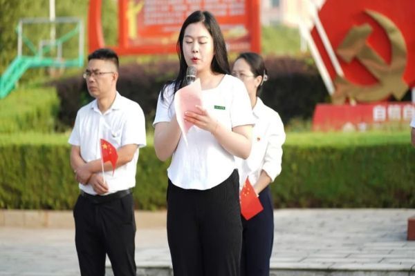 最后,数字经济产业学院学生领誓人詹语凡在红旗下带领大家宣誓,大家右拳紧握,神情庄重、精神昂扬,庄严宣誓:“我们生在红旗下,长在春风里。先辈夙愿在心,民族大任在肩。今天,我们庄严承诺:奋斗有我,让人民更加幸福!奋斗有我,让家园更加美好!奋斗有我让祖国更加昌盛!愿以吾辈之青春,复兴伟大之中华!新的百年,听党话、感党恩跟党走!同心向党,奔赴远方!请党放心强国有我。”