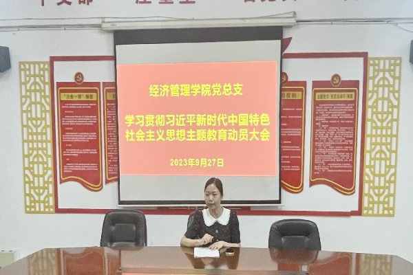 9月27日,beat365召开学习贯彻习近平新时代中国特色社会主义思想主题教育动员大会,深入学习贯彻习近平总书记关于主题教育的系列重要讲话和重要指示精神,传达落实党中央、省委、市委以及校党委主题教育工作会议要求,对beat365开展主题教育进行动员部署。会议由经济管理学院党总支书记沈晓娇主持,经济管理学院院长郑群哲与全体党员教师参加。