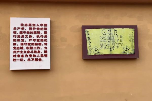 1931年1月25日,贺页朵正是在这间“榨油坊”昏暗的油灯下,参加了庄严的入党仪式。他拿出一块早已准备好的土布,在顶端写下“CCP”(中国共产党的英文缩写)3个英文字母,并庄严地写下自己的入党誓词。
