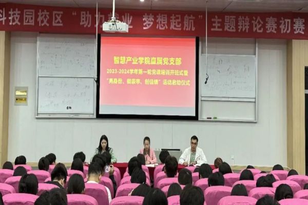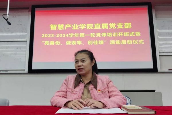 为深入学习贯彻习近平新时代中国特色社会主义思想主题教育和落实党的二十大精神,2023年10月8日晚,智慧产业学院直属党支部在C106召开2023-2024学年第一轮党课培训开班式暨“亮身份、做表率、创佳绩”活动启动仪式。此次大会由智慧产业学院直属党支部副书记张龙龙主持,党支部书记何丽、党支部专职组织员何艳霞、全体学生党员、入党积极分子、2023年入党申请人、学生骨干参加。