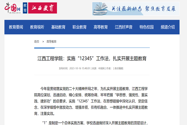 “3”是注重三个相结合,把主题教育与省委十五届四次全体(扩大)会议精神和市委九届六次全体(扩大)会议精神结合起来;与学校中心工作任务结合起来,推动学校高质量发展;与民呼我为,解决师生急难愁盼的具体问题结合起来。学校聚焦省委打造“三大高地”、实施“五大战略”,推进新余市新型工业化目标、学校建设有特色高水平应用型大学目标和学校“十四五”规划任务,做好“融合文章”,以提高办学质量和师生满意度的新成效检验主题教育成果。