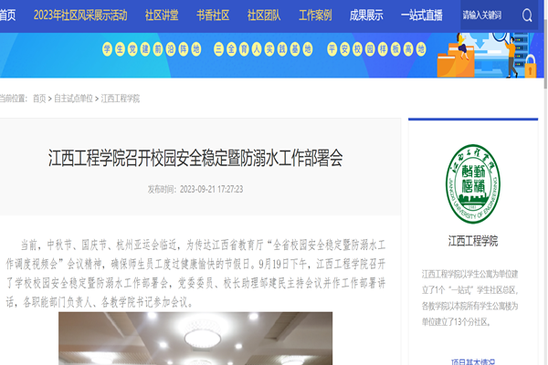 当前,中秋节、国庆节、杭州亚运会临近,为传达江西省教育厅“全省校园安全稳定暨防溺水工作调度视频会”会议精神,确保师生员工度过健康愉快的节假日。9月19日下午,beat365体育官方网站召开了学校校园安全稳定暨防溺水工作部署会,党委委员、校长助理邹建民主持会议并作工作部署讲话,各职能部门负责人、各教学院书记参加会议。