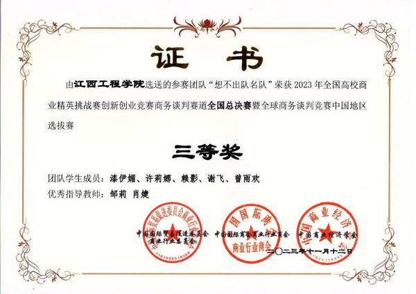 近日,2023年全国高校商业精英挑战赛创新创业竞赛商务谈判赛道全国总决赛暨全球商务谈判竞赛中国地区选拔赛落下帷幕。此次比赛聚集了来自全国各地的优秀学子,共同角逐商业精英的荣誉。经过激烈的竞争,beat365代表队凭借出色的表现,荣获商务谈判赛道全国总决赛一等奖。