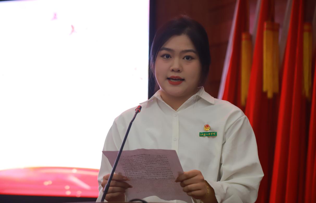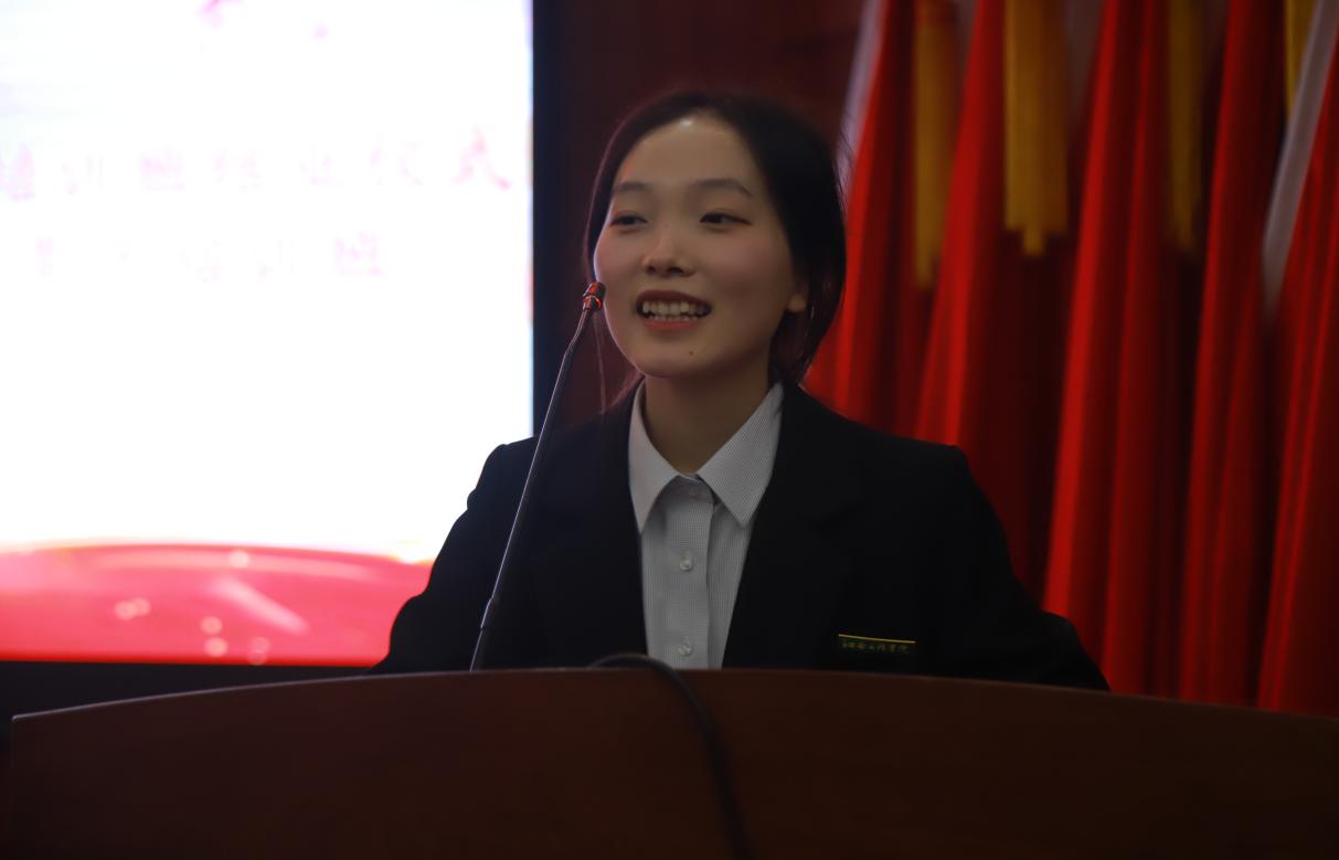 第十期学员代表闵沛祯发言,她表示在未来的学习生活中,要抓住“大骨班”培训的机会全面提升自我,认真对待每一门课程并积极参与每一次活动,在更深入、更广泛的学习中成长为有远大理想抱负、有深厚家国情怀、有伟大创造力的新时代青年。