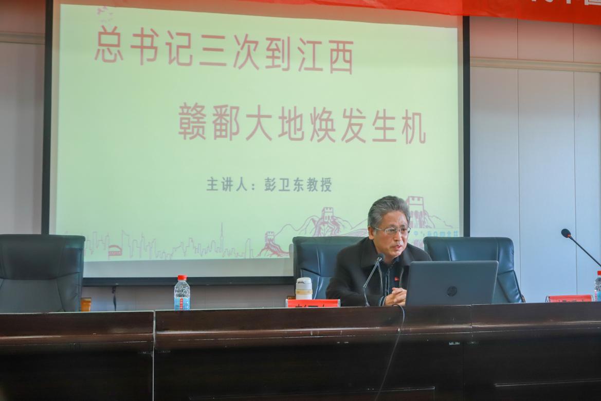 19日下午,马克思主义学院彭卫东教授以《井冈山斗争与井冈山精神》为主题,结合党的二十大精神、习近平总书记考察江西重要讲话精神和主题教育相关内容,通过引用大量案例详细讲述了井冈山斗争历史、井冈山精神内涵和如何弘扬井冈山精神。