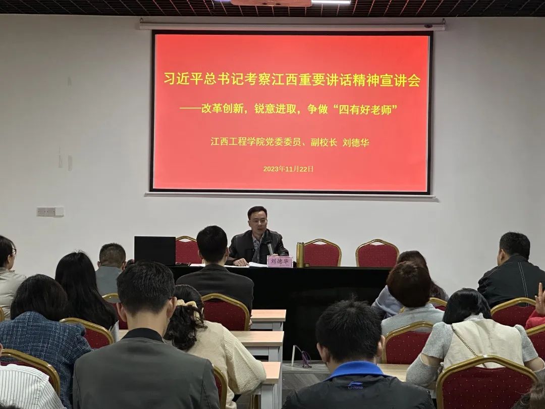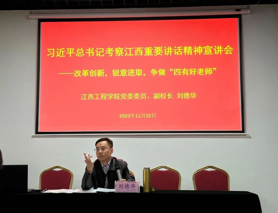 宣讲会上,刘德华副校长谈到,习近平总书记时隔四年再次亲临江西考察指导并发表重要讲话,充分体现了习近平总书记对江西的关怀。我们要将这一份关怀转化成强大的工作动力。坚持用理论指导实践,落实好习近平总书记对教育的嘱托,高质量开展第二批主题教育。立足岗位,引导全体师生坚定永远跟党走的理想信念,带领广大教师弘扬新时代教师精神,争当立德树人“大先生”,为实现学院高质量跨越式发展贡献自己的智慧和力量。