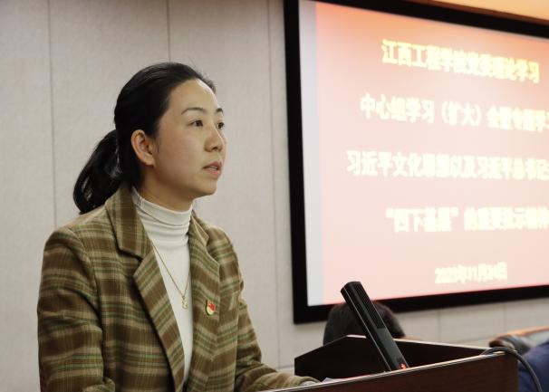 会议强调,要从深刻领悟“两个确立”决定性意义的政治高度深入学习贯彻习近平文化思想,全面把握习近平文化思想的重大意义、丰富内涵和实践要求。要深刻领会习近平文化思想的重大意义和丰富内涵,肩负好文化强国建设的新使命。要坚持不懈用习近平新时代中国特色社会主义思想凝心铸魂,持续在真学、真会、真用和内化、深化、转化上下功夫,充分将习近平文化思想融入到党建工作和人才培养过程中,牢牢把握意识形态工作的领导权、管理权、话语权,运用好江西的红色文化资源,为担负起新的文化使命提供坚强的政治保证,以高质量宣传思想文化工作助力学校各项事业高质量发展。