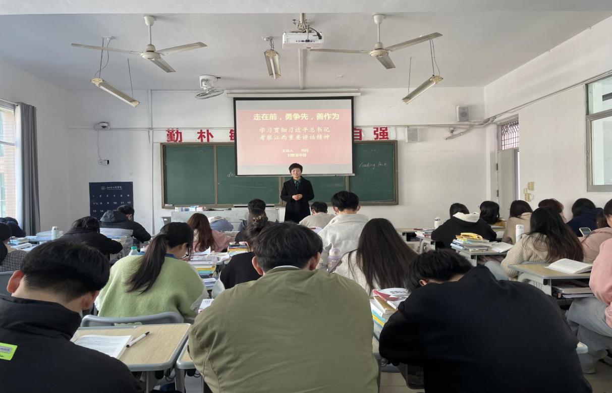 刘丹以深入学习贯彻习近平总书记考察江西重要讲话精神为切入点,围绕“充分认识习近平总书记考察江西重要讲话精神的重大意义”,“深刻领会习近平总书记考察江西重要讲话精神的丰富内涵”等方面做了深刻阐述,教育引导大家深刻领会习近平总书记再次考察江西的重大意义,从而激发全体学生踔厉奋发、勇毅前行。以更好的状态、更优的学风扎实学好专业课知识,为自己的成长成才奠定优厚的基础。同学们纷纷表示,此次妇联宣讲团宣讲学习贯彻习近平总书记考察江西重要讲话精神,主题鲜明、思想深刻、内容丰富。要立足学好本专业知识,争做社会主义建设“四有”时代新人、全面融入学校学风建设、深入推进学校内涵特色发展、以更高标准、更宽视野。努力在新时代新征程上扛起更强担当、展现更大作为。