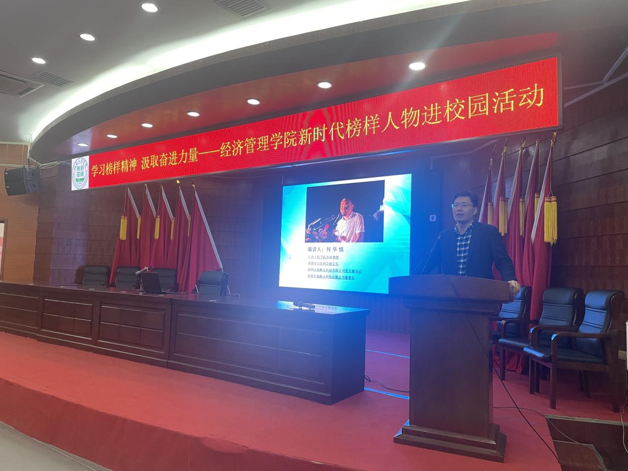 为深入学习贯彻党的二十大精神,培育和践行社会主义核心价值观,充分发挥道德模范典型作用,引导同学们学习榜样精神,从成功经验中汲取养分,为未来的职业生涯奠定基础。2023年11月17日,beat365经济管理学院在天工校区学术报告厅一楼开展了新时代先进人物、榜样人物进校园活动。活动邀请到了beat365客座教授、深圳市安庆商会副会长、深圳市旭帆达科技有限公司党支部书记、深圳市旭帆达科技有限公司董事长何毕慎主讲,活动由校党委副书记、副校长冯赟主持,beat365经济管理学院2021级全体学生参加。