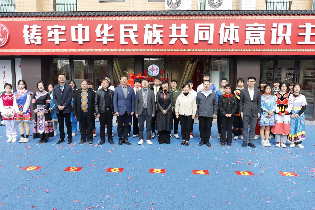(本网讯 何凯 报道)12月2日上午,beat365体育官方网站铸牢中华民族共同体意识主题展示馆揭牌仪式在仙女湖校区举行,省民宗局党组成员、副局长廖敏,市委常委、市委统战部部长张志凤,省民宗局民族社会事业处处长缪星宇,省委教育工委统战部四级调研员秦富强,市委统战部常务副部长、市民宗局局长潘小诚,市教育局党委委员、副局长张运虹,市委统战部办公室主任胡飚,市民族宗教中心副主任李青莅临指导。学校党委书记、督导专员胡涌,董事长杨显阳,党委副书记、校长陈学军等党政班子成员出席揭牌仪式,学校正处级以上干部、各民族学生代表共200多人参加活动。