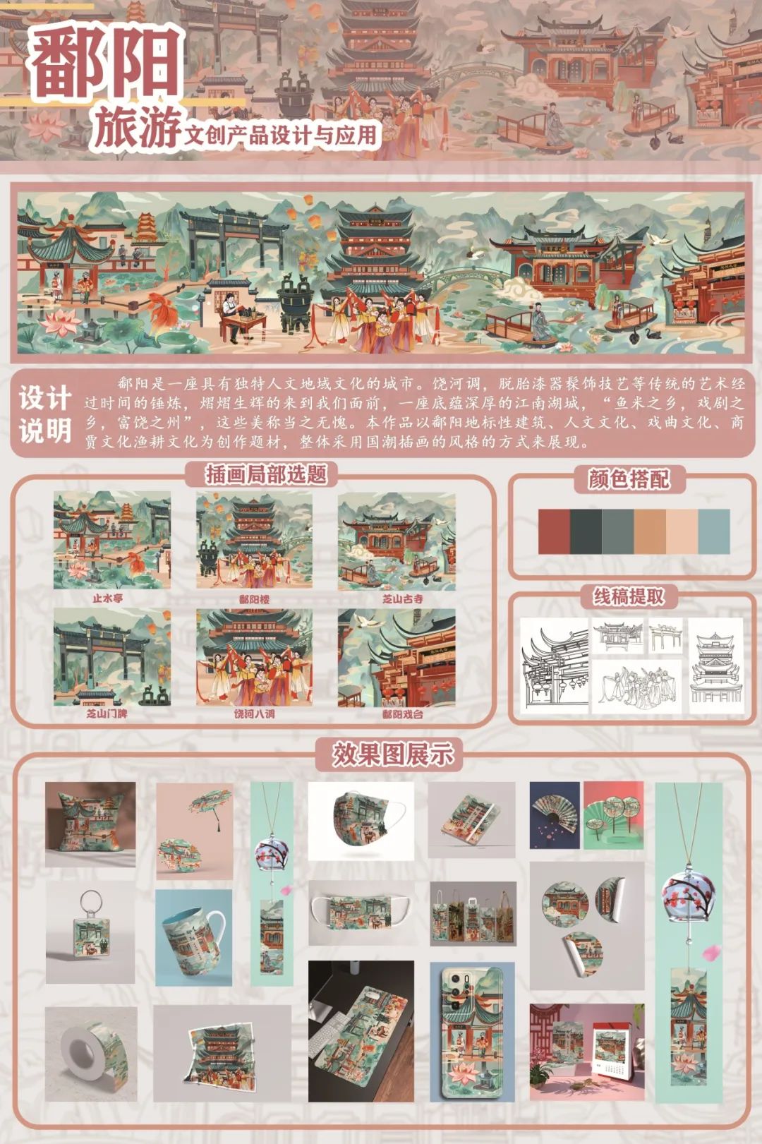 经作品初选、线上投票、专家评审会复评等流程,beat365抱石艺术学院2019级视觉传达设计2班洪建同学设计的《鄱阳旅游文创产品设计与应用》在各地选拔推报的 614件作品中脱颖而出,获旅游纪念品、礼品设计类作品优秀奖。