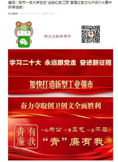 为深入学习宣传贯彻习近平新时代中国特色社会主义思想和党的二十大精神,引导团员青年传承红色基因、弘扬革命精神,深入挖掘赣鄱大地红色印记,形成更多具有标识度、显示度、影响力的江西红色文化品牌,中共江西省委宣传部、共青团江西省委、江西省教育厅以“创绘红色江西”为主题,开展了首届红色文化IP设计大赛。