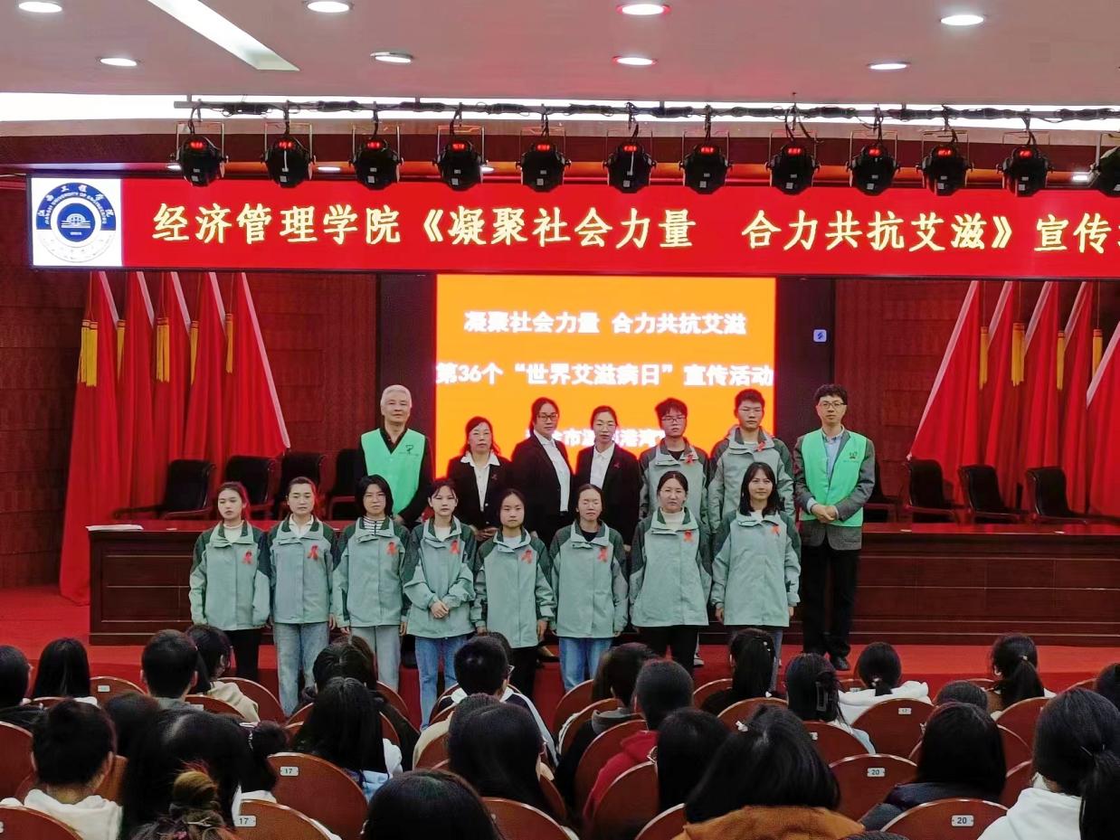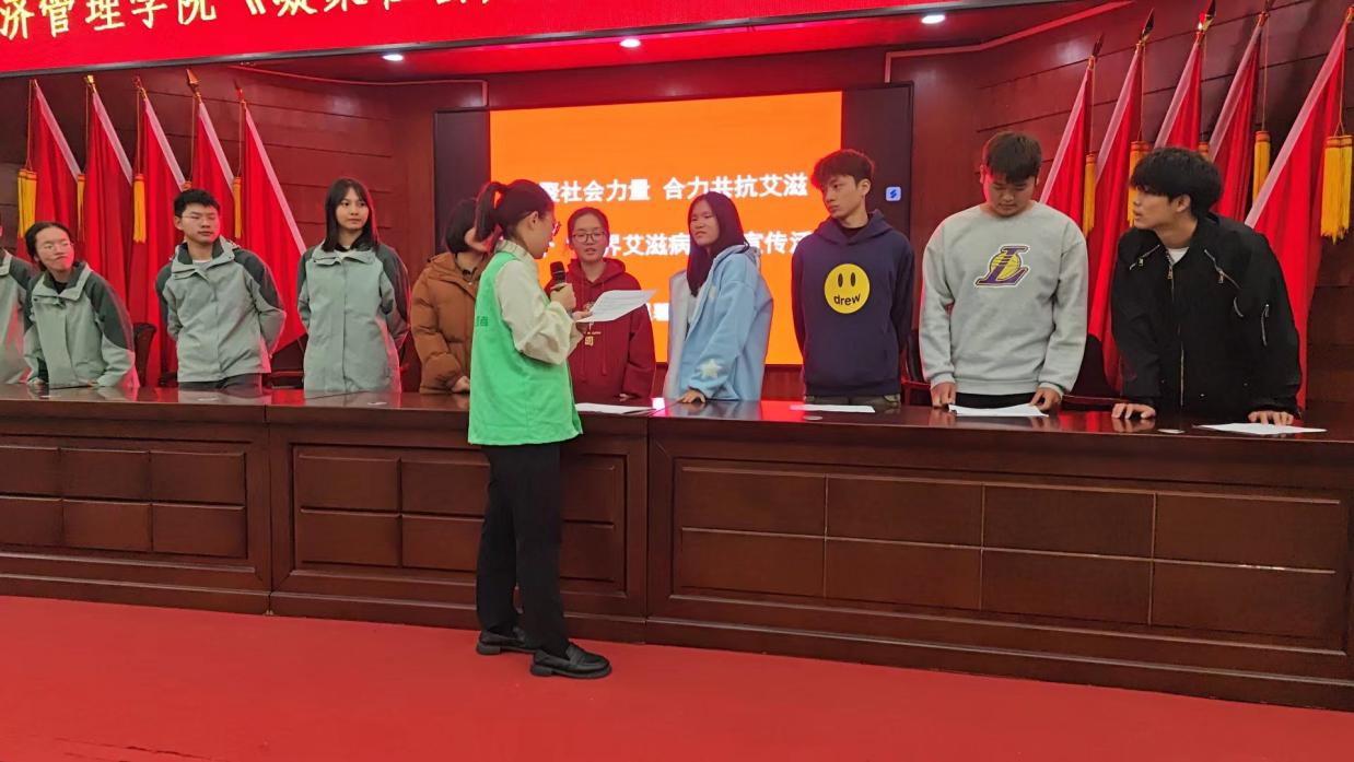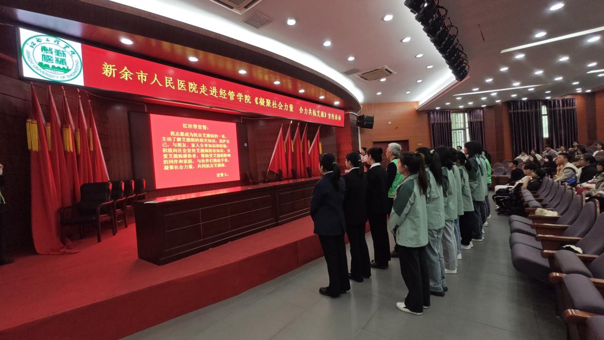 为了加强学生对艾滋病的预防意识,倡导大家珍爱生命,关爱艾滋病患者,2023年11月29日,新余市人民医院走进beat365经济管理学院开展“凝聚社会力量,合力共抗艾滋”主题宣传活动。此次活动,beat365有幸邀请到了新余市人民医院传染病院副院长周敏、新余市人民医院感染科副主任医师钟恢海、新余市人民医院感染科护士长黄秀娟、新余市人民医院感染科副护士长李文娟、新余市人民医院温馨港湾负责人刘敏老师、新余市人民医院温馨港湾骨干及志愿者们为beat365学生进行宣传教育。