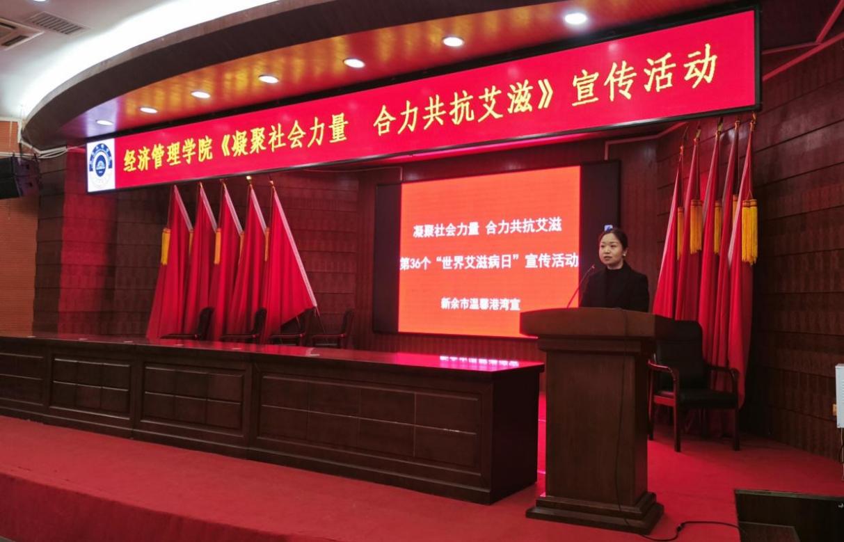 活动伊始,经济管理学院党总支书记沈晓娇对出席活动的医护人员表示欢迎,并引出了本次活动的主题。新余市人民医院温馨港湾骨干李慧主持并介绍了参加本次活动的嘉宾及本次活动的目的和艾滋病的危害。
