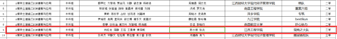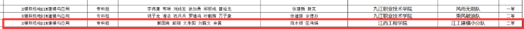 获奖名单本科组:A模块土建施工BIM建模与应用,肖钰龙、周静、王珏、王曼聿、黄阳帆五名学生荣获三等奖