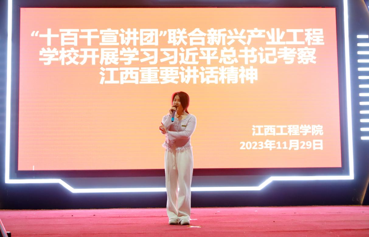 宣讲团成员聚焦“走在前、勇争先、善作为”的目标要求,结合自身的学习心得,根据青年学生特点,选择宣讲素材,调整宣讲内容,使理论宣讲更具针对性,以真挚情感、生动语言宣讲好习近平总书记考察江西重要讲话精神中蕴含的重要意义,推动习近平总书记考察江西重要讲话精神落实落地,为推动全面建设社会主义现代化江西贡献青春力量。