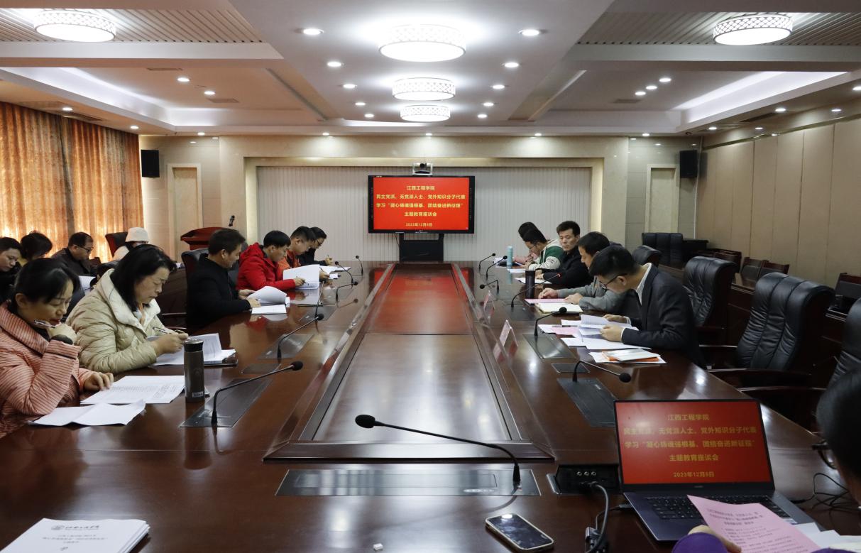12月5日下午,学校在天工校区行政楼七楼召开民主党派、无党派人士和党外知识分子代表学习“凝心铸魂强根基、团结奋进新征程”主题教育座谈会。校党委书记、督导专员胡涌,党委委员、董事长助理、校长助理、统战部部长乐俊杰出席会议并讲话,学校民主党派、无党派人士和党外知识分子,党委统战部工作人员共40余人参加会议,会议由党委书记、督导专员胡涌主持。