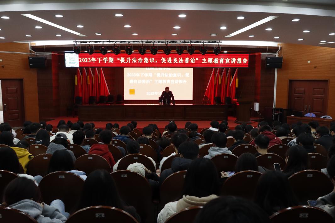 为深入学习贯彻习近平新时代中国特色社会主义思想,全面贯彻落实党的二十大精神,扎实推进法治学校建设,12月6日下午,市关工委法治教育报告团、市教育局关工委来校开展主题教育宣讲报告。报告团成员罗建华以《提升法治意识,促进良治善治》为题,为300余名学生代表进行了一场生动的法治教育讲座。