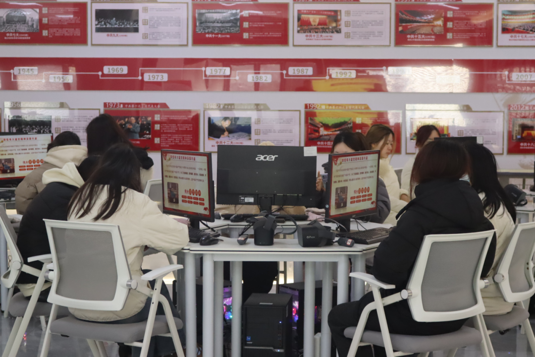 (本网讯 刘永东 报道)为创新思想政治理论课教学实践,提高思政课教学的有效性,12月21日,教育与健康管理学院党总支书记刘永东带领2021级小学教育专升本2班学生来到思政VR实践中心,上了一堂别开生面的实践教学课——“VR学党史”。