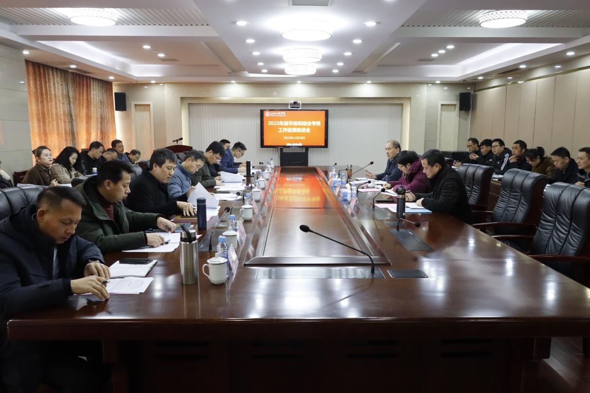 胡涌书记强调,年检和综合考核工作是规范学校办学的重要抓手,是对学校办学水平的重要检验,各单位要高度重视。省教育厅对高校年检和综合考核工作呈现出新特点、新要求,其时间紧、任务重,全校上下要通力协作,加强各部门沟通协调,扎实做好本次年检筹备工作;坚持问题导向,各单位负责人要勇担责任,认真落实,按照任务分解,明确责任分工;严格按照时间节点准备和上报材料;要精准施策,对标对表,提炼亮点,查漏补缺,把工作做细、做实、做足,确保数据信息准确,确保高质量完成学校年检和综合考核的各项工作任务。