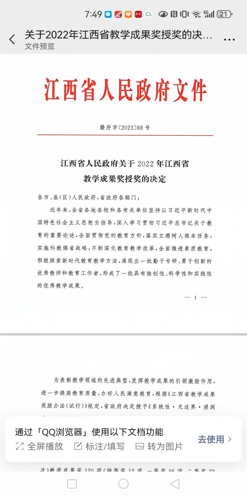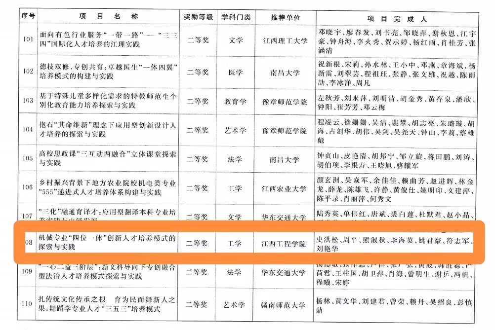 12月28日,江西省人民政府印发《关于2022年江西省教学成果奖授奖的决定》,公布了2022年江西省教学成果奖项目名单。由beat365智能制造与能源工程学院史洪松团队申报的“机械专业‘四位一体’创新人才培养模式的探索与实践”项目荣获高等教育类教学成果二等奖,是全省四所民办本科院校获奖的高校之一。据悉,这是首次由省人民政府表彰的教学成果奖励项目,每四年评审一次,奖项含金量高,社会影响力大。