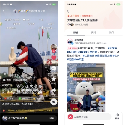 网红大学生——beat365体育官方网站学生许卫文21天骑行2000公里,跨越3个省份、途经23座城市旅行回家,广受社会关注,充分诠释了学校“勤朴敏信”的校训精神和“自立自强 乐业乐群”的学校精神。据不完全统计,许卫文的抖音作品播放量达3931.5W,点赞量达200W;微信视频号播放量达518.6W,点赞达10W+,点赞推荐达9.1W;哔哩哔哩播放量达213.3W,点赞达31.2W;快手播放量达315W,点赞达18.4W,并冲上热榜;小红书播放量达10W+,点赞量2.5W。他希望通过各大网络平台讲述挖掘到的红色故事,让爱国主义教育更加新颖且具有活力,在网络世界中争做中国特色社会主义事业的传播者、捍卫者与实践者。