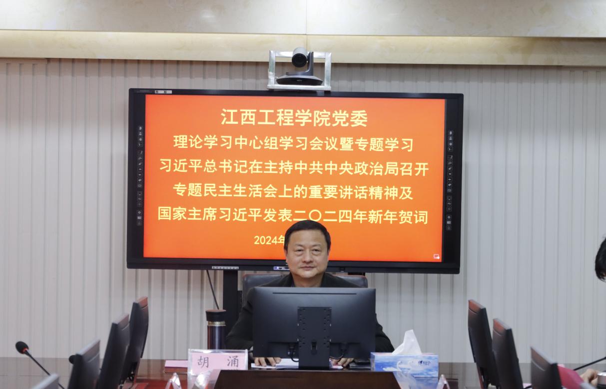 (本网讯 何凯 报道)1月12日,学校在天工校区行政楼七楼会议室召开2024年第1次党委理论学习中心组专题学习会议。深入学习习近平总书记在主持中共中央政治局召开专题民主生活会上的重要讲话精神及国家主席习近平发表二〇二四年新年贺词。校党委书记、督导专员胡涌主持会议并讲话,在家党政领导班子成员出席会议。党群部门负责人列席会议。