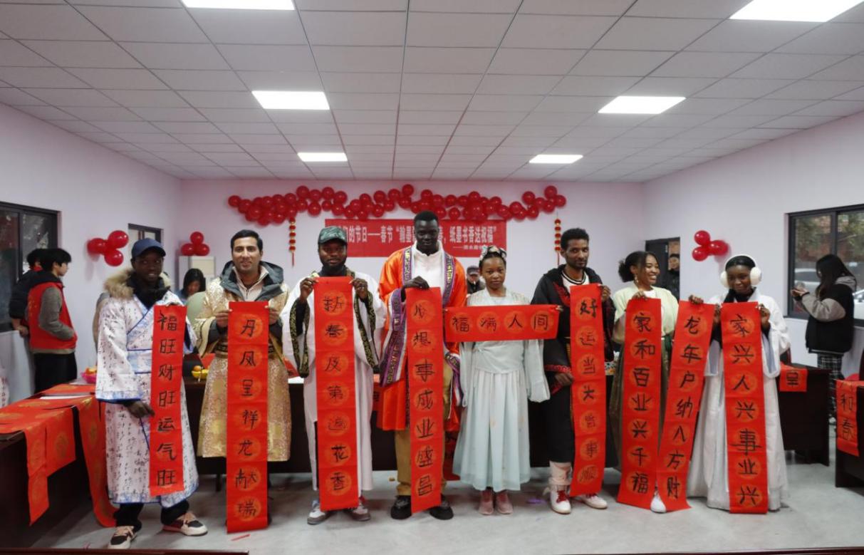 近日,beat365体育官方网站带领学校外国留学生走进分宜县钤东街道办事处泗水路社区开展2024年“写春联 送祝福 外国留学生体验传统中国年”文化下乡活动,通过举行送春联联谊系列活动,拉近中外朋友之间的距离,进一步提升民众文化素质水平、加深中外文化交流。
