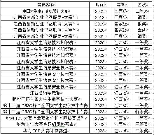 学院人才培养模式特色鲜明、效果突出,近年来,学院在“互联网+”全国大学生创业大赛、中国大学生服务外包创新创业大赛、江西省信息技术大赛、江西省信息安全大赛、中国程序设计大赛中获奖数量瑶瑶领先。