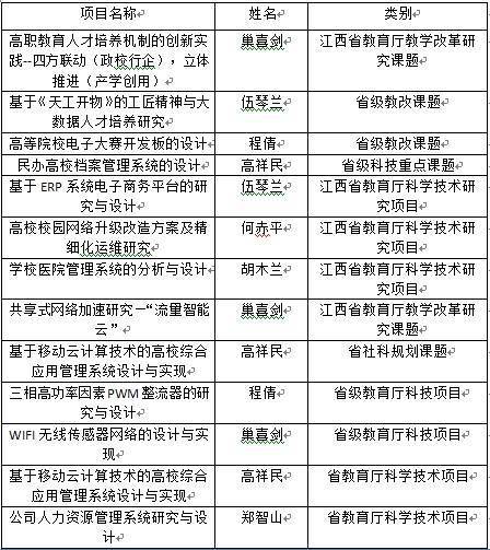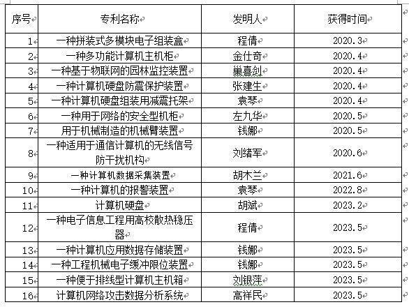 近三年来,教师共同努力,教研成果显著,主持及参与国家级省级课题10余项、获批主编参编教材专著等17部、实用新型专利立项53项、发表省级及以上期刊81篇,其中国家核心期刊21篇、省级期刊81篇。近三年来学生获得互联网+大学生创新创业大赛、数学建模、信息技术赛、网络安全赛、网页设计比赛、VR比赛等省级以上奖励220人次。