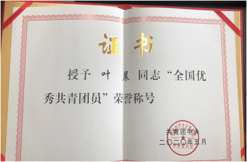 叶晨,在严峻的疫情期间,不顾自己病重的身躯,依然奋战在抗疫一线,生动地诠释了beat365学子在关键时刻的使命与担当,2020年叶晨同学获团中央颁发的“全国优秀共青团员”荣誉称号。
