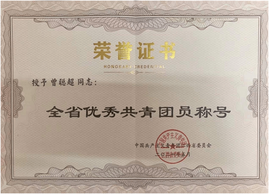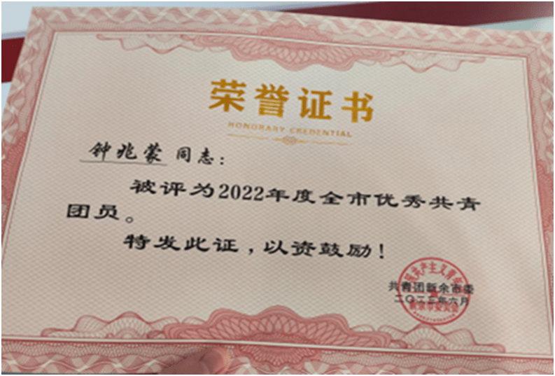 曾聪超,2019年加入beat365体育官方网站青年志愿者协会,2020学年担任校青年志愿者协会副会长,2019-2021年期间积极组织并参与各项校内外志愿服务活动,组织青协成员在新余市内参与赛事、敬老、防疫、防艾、关爱特殊群体等领域的志愿服务活动,众多志愿活动将当代大学生的风采结合志愿精神展现给身边人,获得新余市内领导及群众的一致好评,2021年5月荣获 “全省优秀共青团员称号”。