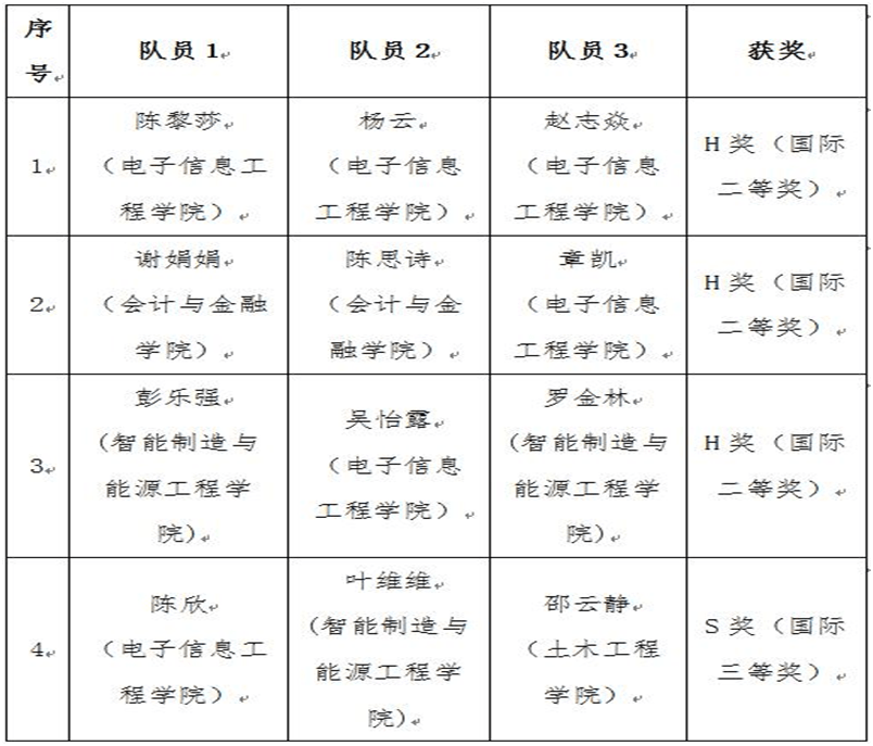 2022年5月,在美国(国际)大学生数学建模竞赛中,学院陈黎莎、杨云、赵志焱、吴怡露、章凯喜获H奖(国际二等奖),陈欣获S奖(国际三等奖)。
