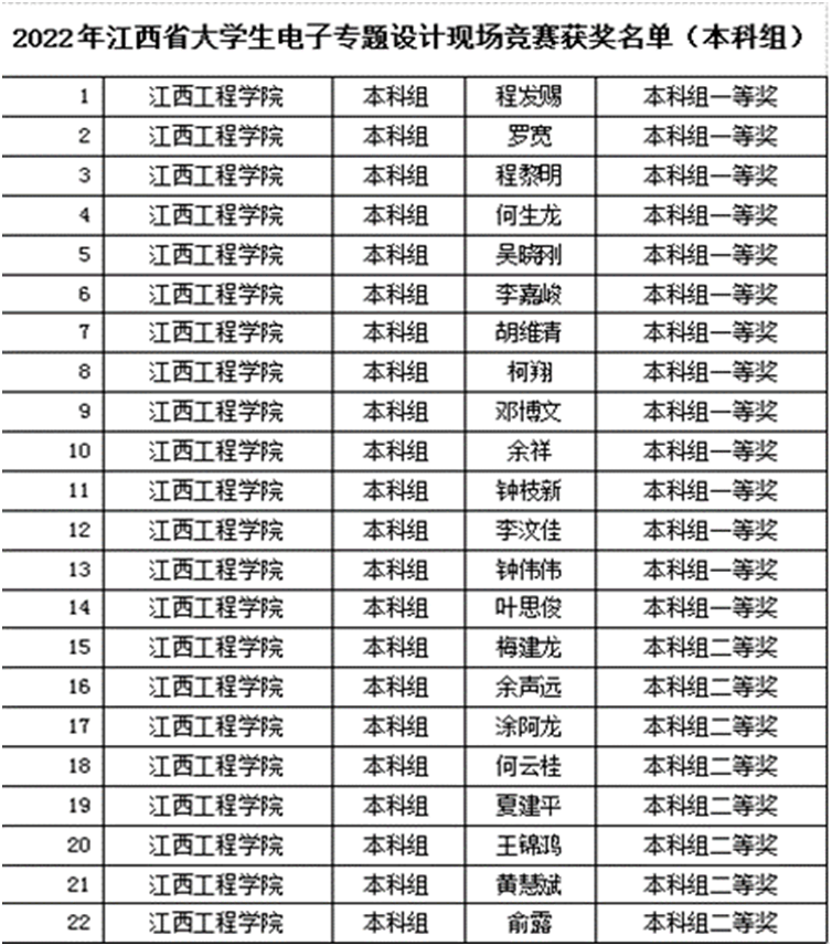 2019年电子信息工程专业荣获江西省“双一流”特色建设专业;2021年“电子信息应用创新课程教学团队”获江西省高水平本科教学团队;《数字电路》、《电气控制与PLC》立项校级线上精品课程;“数字电路”评为2022年江西省线上一流本科课程;“通信工程”专业获批为beat365体育官方网站一流本科专业建设点;“以赛促学、产学研融通”电子信息类创新人才培养模式探索与实践获beat365体育官方网站教学成果三等奖;通信工程教研室被评为2021年先进教研室;学院被授予2021年度“教学质量工程建设突出贡献单位”称号。