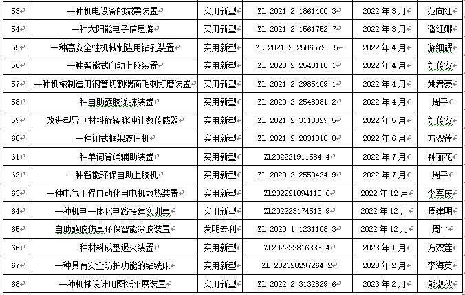4.自2021年以来,学院教师共申请发明专利1项,实用新型专利68项,外观设计专利1项。