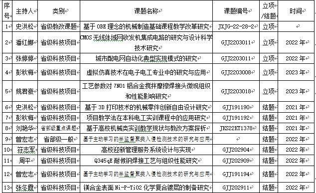 1.自2021年以来,学院教师共主持或参与省级课题立项5项、校级课题立项8项;主持或参与横向课题6个,研究开发经费共约500余万元;省级课题结题11项、校级课题结题3项。