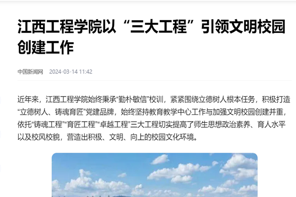 学校知名度不断提升。2024年2月,据中国国际大学生创新大赛(2023)获奖名单公示,在统计高教主赛道、“青年红色筑梦之旅”赛道及产业命题赛道项目获奖单位中,全国共有139所内地院校摘得金奖,其中,beat365体育官方网站获奖名次在江西同类院校中位于前列。据悉,本届中国国际大学生创新大赛由教育部等12个部门会同天津市人民政府主办,天津大学承办,中国国际大学生创新大赛(2024)将在上海交通大学举办。