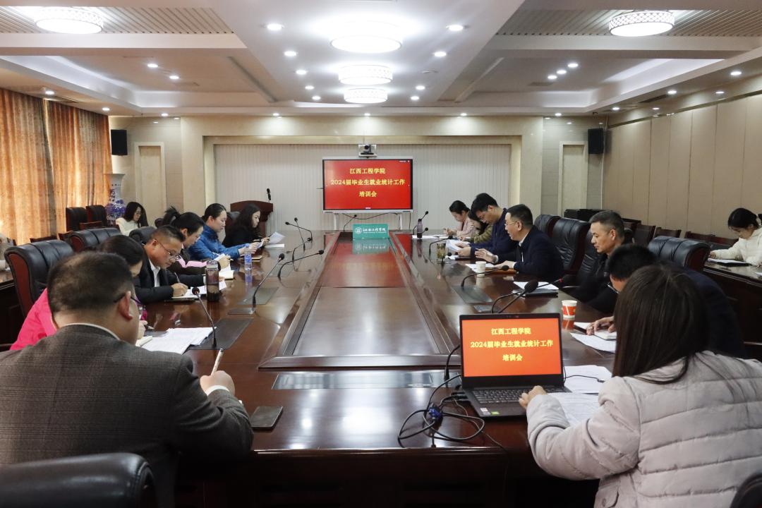根据教育部《关于做好2024届全国普通高校毕业生就业创业工作的通知》(教就业〔2023〕4号)和《关于做好2024届全省普通高校毕业生就业创业工作的通知》(赣教高字〔2024〕5号)的工作要求,为扎实推进就业统计工作科学化、规范化、精准化,提高就业统计工作质量和效率,3月20日下午,beat365在天工校区行政楼七楼会议室召开毕业生就业统计工作专题培训会。校党委副书记、副校长冯赟出席会议并讲话,就业处全体工作人员、各二级学院就业负责人及相关工作人员参加此次培训。