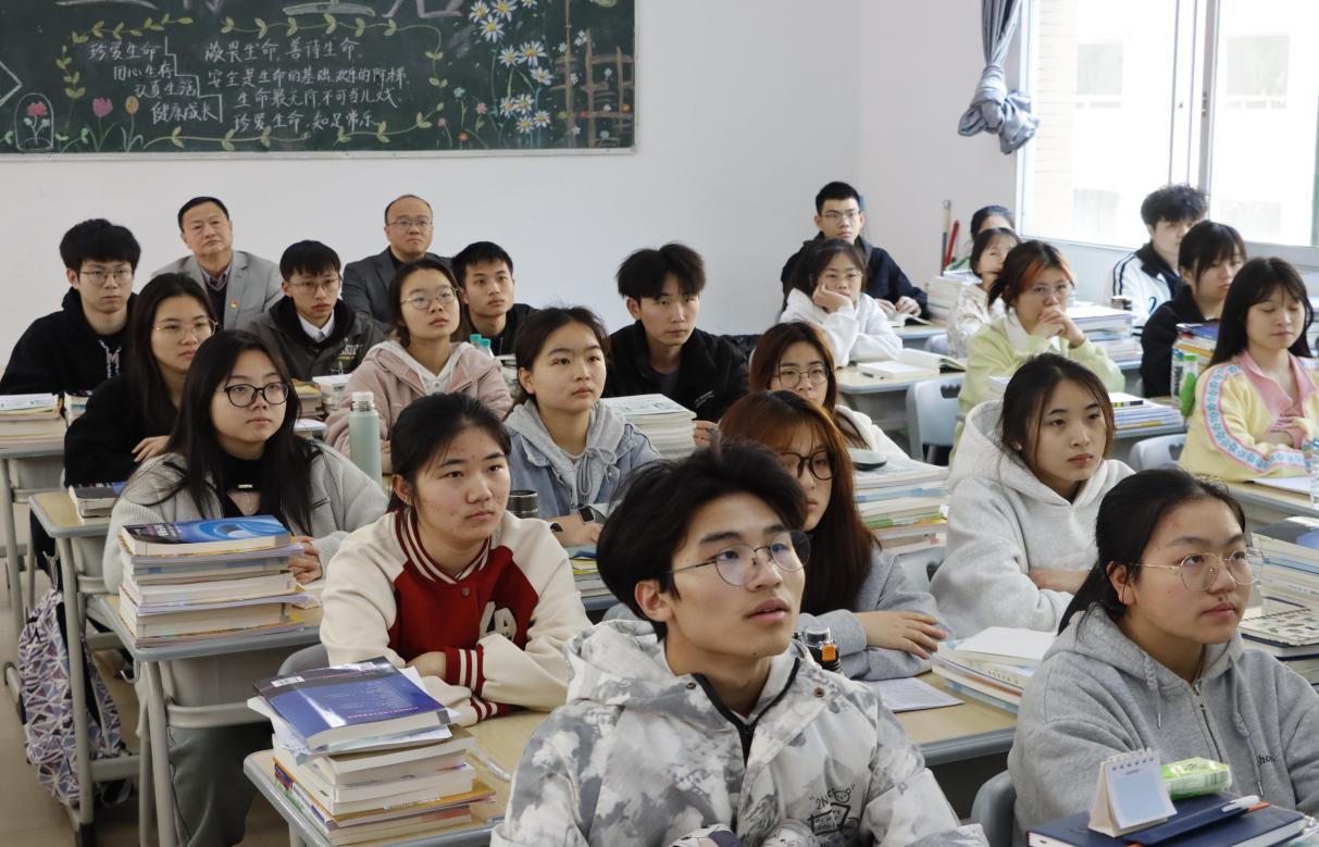 胡涌书记坐在后排,认真记录教师的授课内容、教学方法和教学效果,细心观察同学们的精神风貌和学习状态。课后与授课教师亲切交流,对授课教师的课堂组织、教学方法、授课内容、师生互动等方面给予充分肯定,同时他勉励青年学生要带头遵守各项安全规定,努力增强安全意识,提高自身防范能力;要珍惜大学时光,刻苦学习知识。要充分认识到思想政治理论课的重要性,自觉用习近平新时代中国特色社会主义思想武装头脑,指导自己的学习、生活和实践;要积极践行社会主义核心价值观,肩负起时代赋予的历史重任,在实现中华民族伟大复兴的生动实践中放飞青春梦想、书写青春华章。