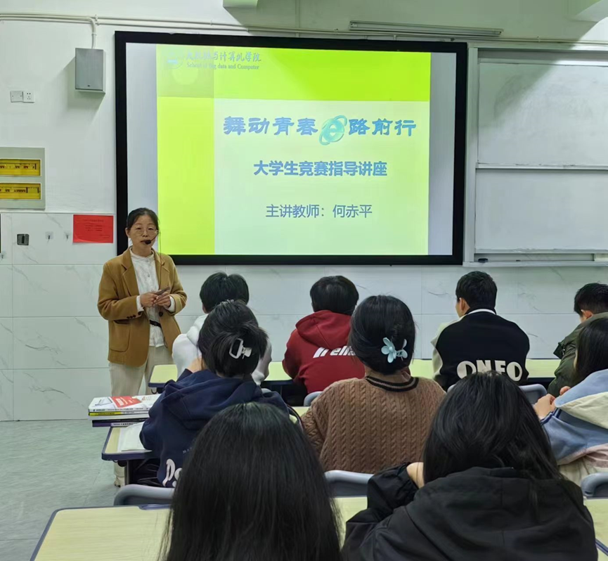 3月26日,大数据与计算机学院何赤平副教授在C206给2023级学生举办了一场别开生面的大学生学科竞赛讲座。本次讲座旨在提高学生对学科竞赛的认识和兴趣,引导大家积极参与,挖掘自身的潜力。