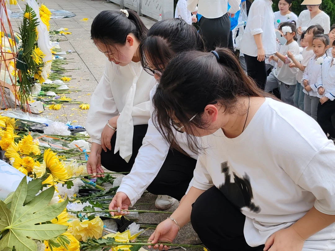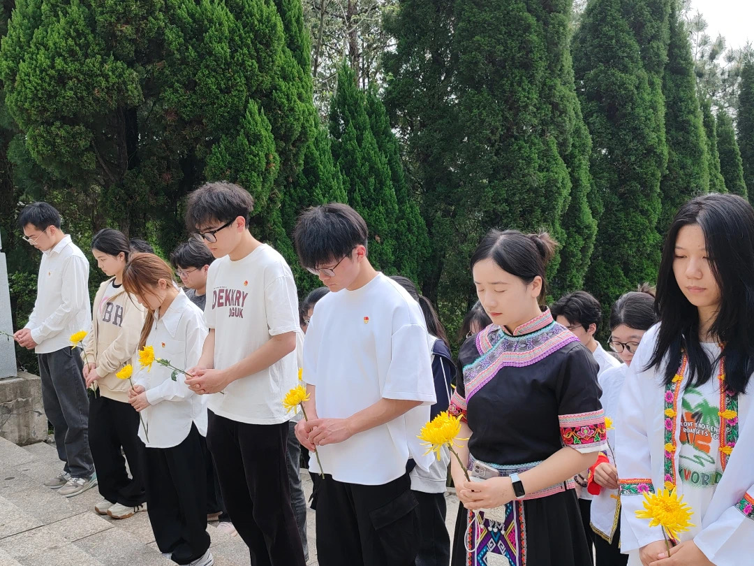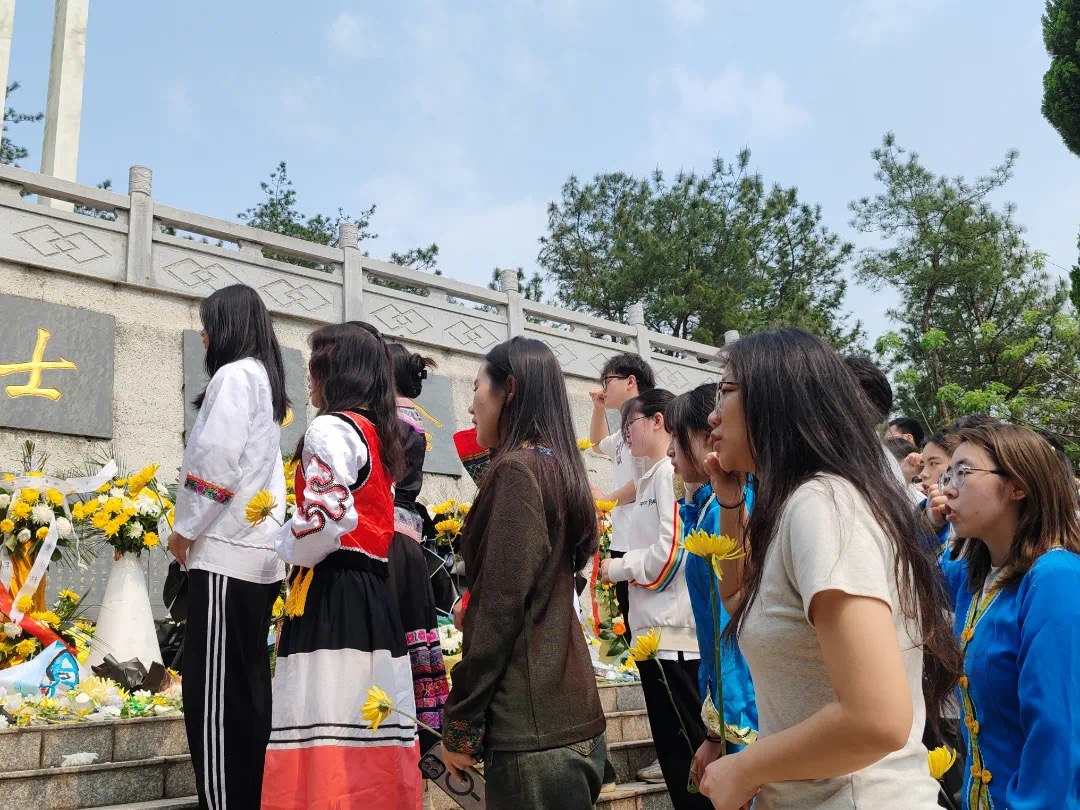 上午8时许,在仰天岗革命烈士纪念碑前,学生肃穆而立,向永垂不朽的人民英雄默哀。随后团员代表和少数民族代表敬献鲜花,深切缅怀英雄烈士的丰功伟绩。