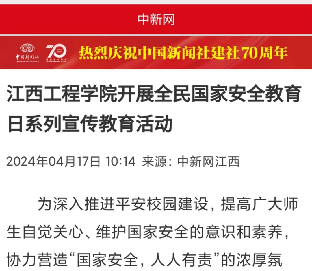 国家安全事关你我他,平安校园惠及大家。下一步,该校严格将“4.15全民国家安全教育日”“4.23世界读书日”以及“江西‘五老’说”“赓续红色血脉、争做薪火传人”等重要时间节点和相关实践教育活动相结合,在全校持续开展安全宣传教育系列教育活动,不断提高广大师生对全民国家安全的认识和践行,进一步引导大家争做国家安全的“宣传者”“践行者”和“守护者”。(于永清)