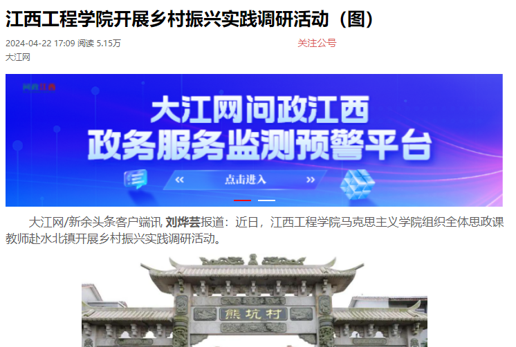 随后,调研组前往水北镇,走访了“江右商帮策源地”黄坑古村和被誉为“忠孝节义熊坑里,锦绣江南第一村”的熊坑村。在古村中,教师们欣赏到了传统建筑的风貌,感受到了乡村文化的独特魅力。同时,他们在与当地村民的深入交流中,了解了乡村振兴带来的新变化和新气象。